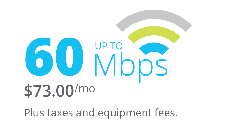 Service availability based on location and may require a site survey. Internet speed is not guaranteed as several conditions may impact performance. Some restrictions may apply. Pricing listed is residential and subject to change without notice.